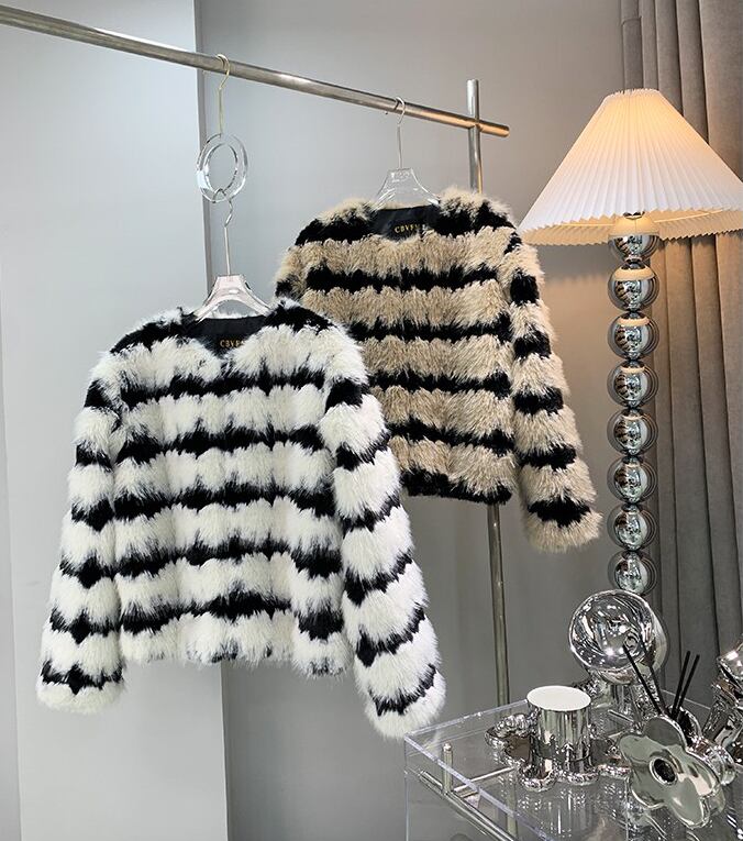 縞模様フェイクファーコート ファージャケット ファーコート エコファー ファーコート. ジャケット コート アウター 上品 エレガント オシャレ 高級感 ふわふわ 2カラー C213