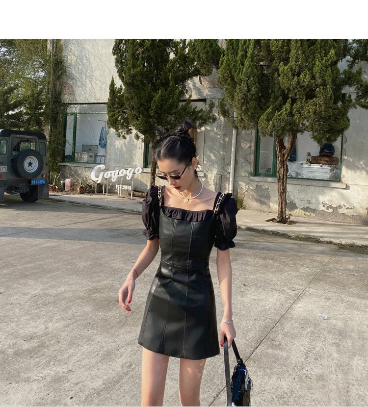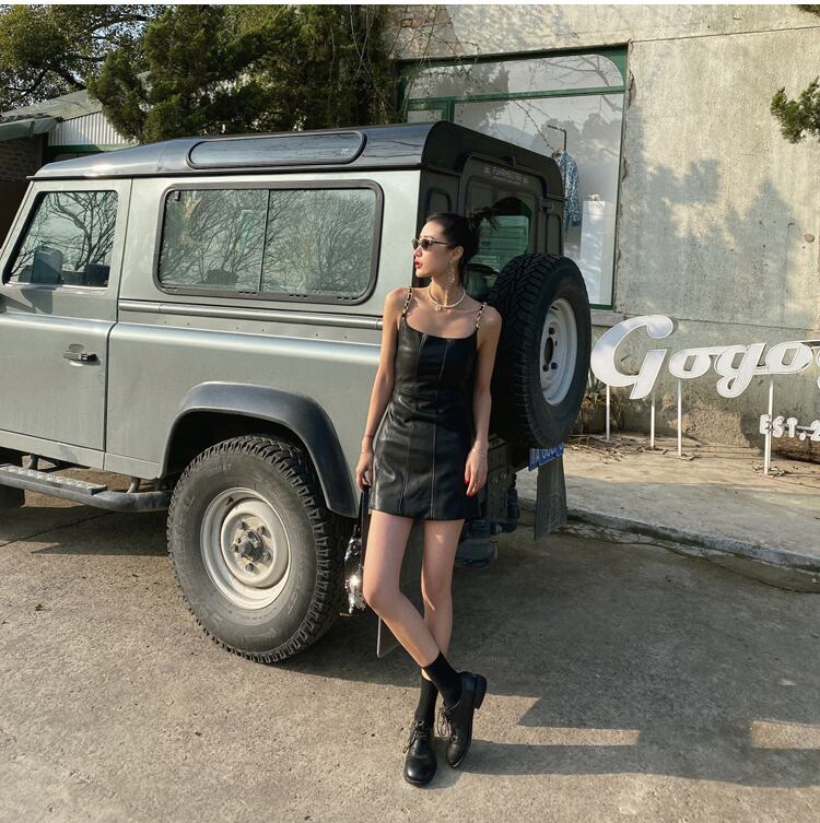 チェーンサスペンダーでセクシー×カッコいい印象を与えてくれるレザーワンピ