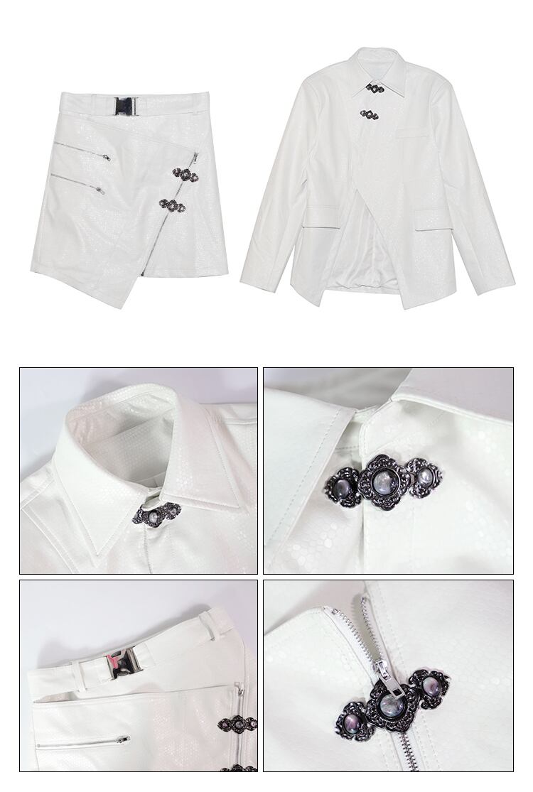 日本未発売【セットアップ】レザージャケット+レザースカート フェイクレザー スーツ スカートスーツ ツーピース 上下セット set up ストリート カッコいい チャイナ風 レディース a4543