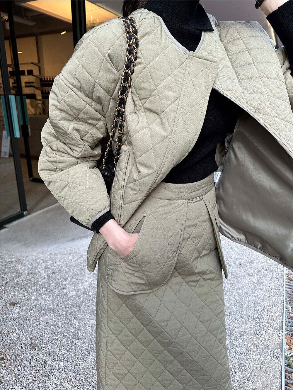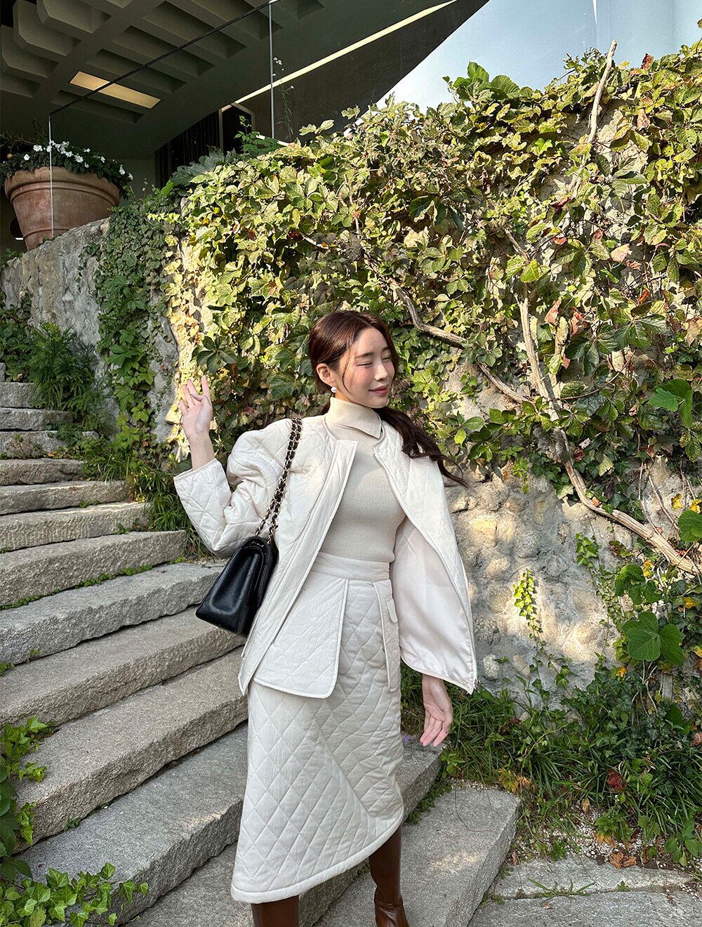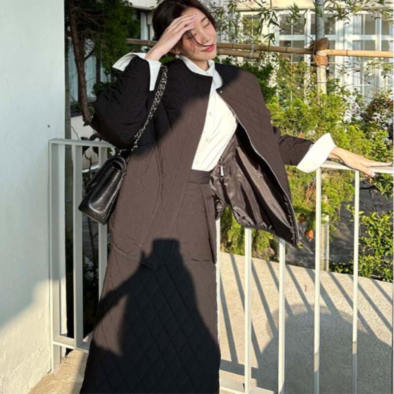 【セットアップ】キルティング ジャケット+ハイウエストスカート
