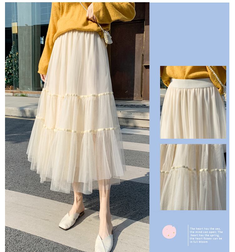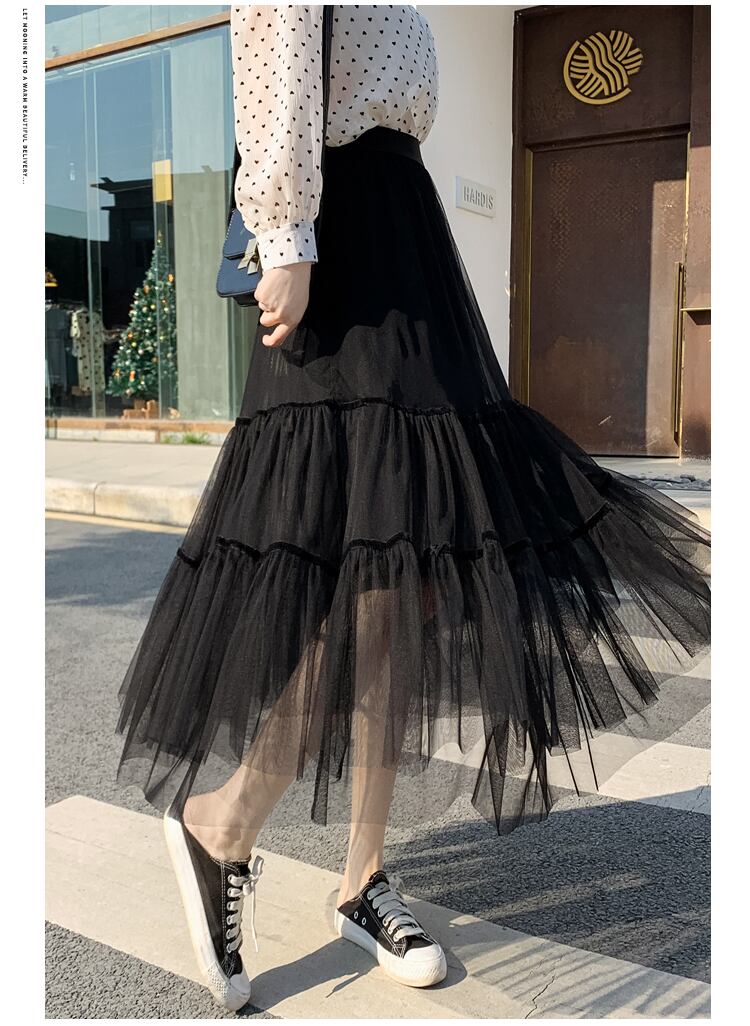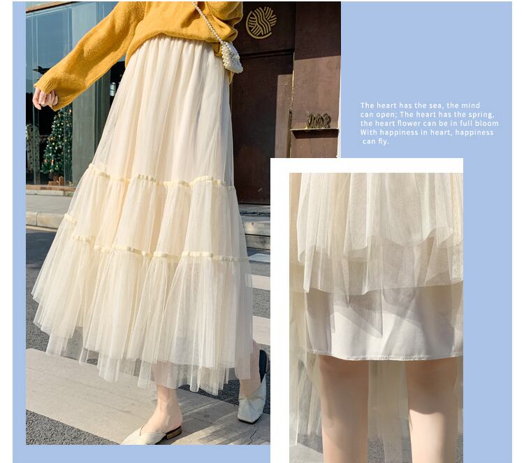 プリーツチュールロングスカート チュールスカート メッシュスカート ロングスカート スカート Aラインスカート レディース 可愛い 2カラー a4547