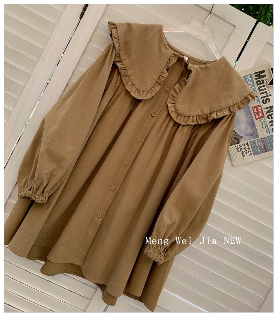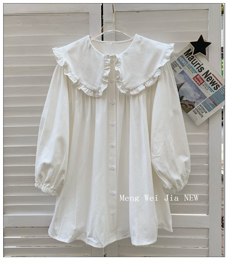ボリュームフリルシャツ 厚手シャツ ブラウス シャツ 長袖 ニット セーター レディース ランタンスリーブ 無地 プルオーバー フリル パフスリーブ 大人かわいい フリルデザイン 5カラー D33