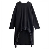アシメントリーフリルワンピース フリルワンピース 不規則デザインワンピース ルーズ ワンピース ドレス レディース モード系 オフィスコーデ ママコーデ オシャレ 2カラー a4567