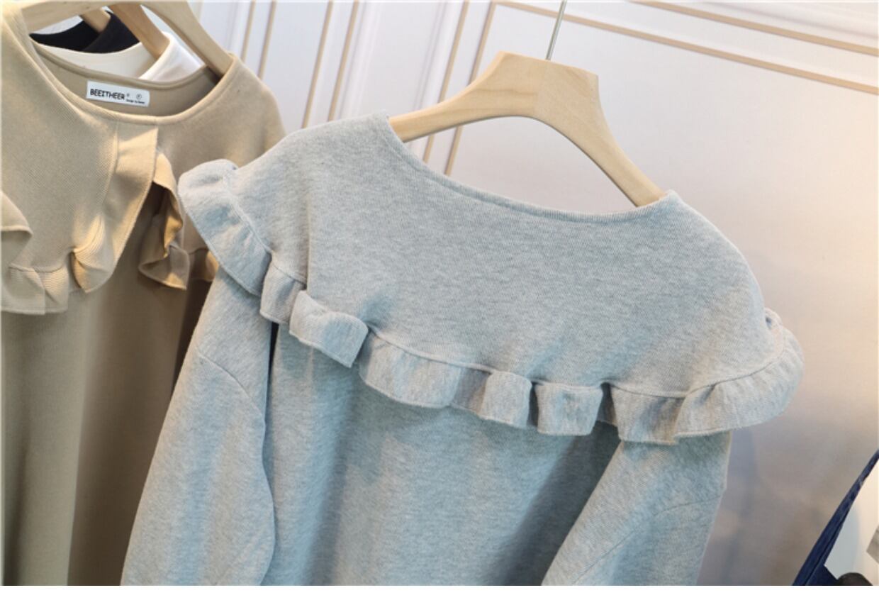前後にたっぷりとあしらったフリルが華やかなフリルセーター