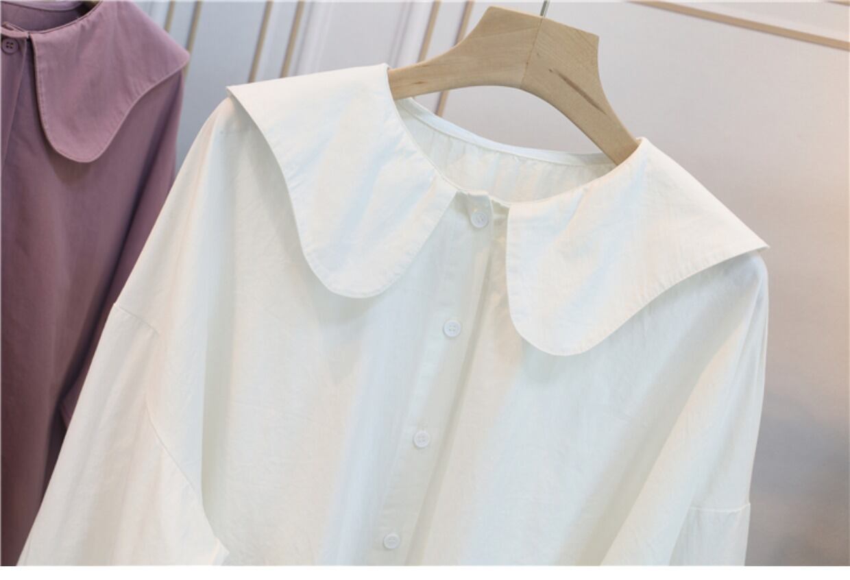 BIG襟シャツ レディース ゆったり カバー 長袖 シャツ ブラウス 可愛い オフィスコーデ ママコーデ 体型カバー 4カラー D102