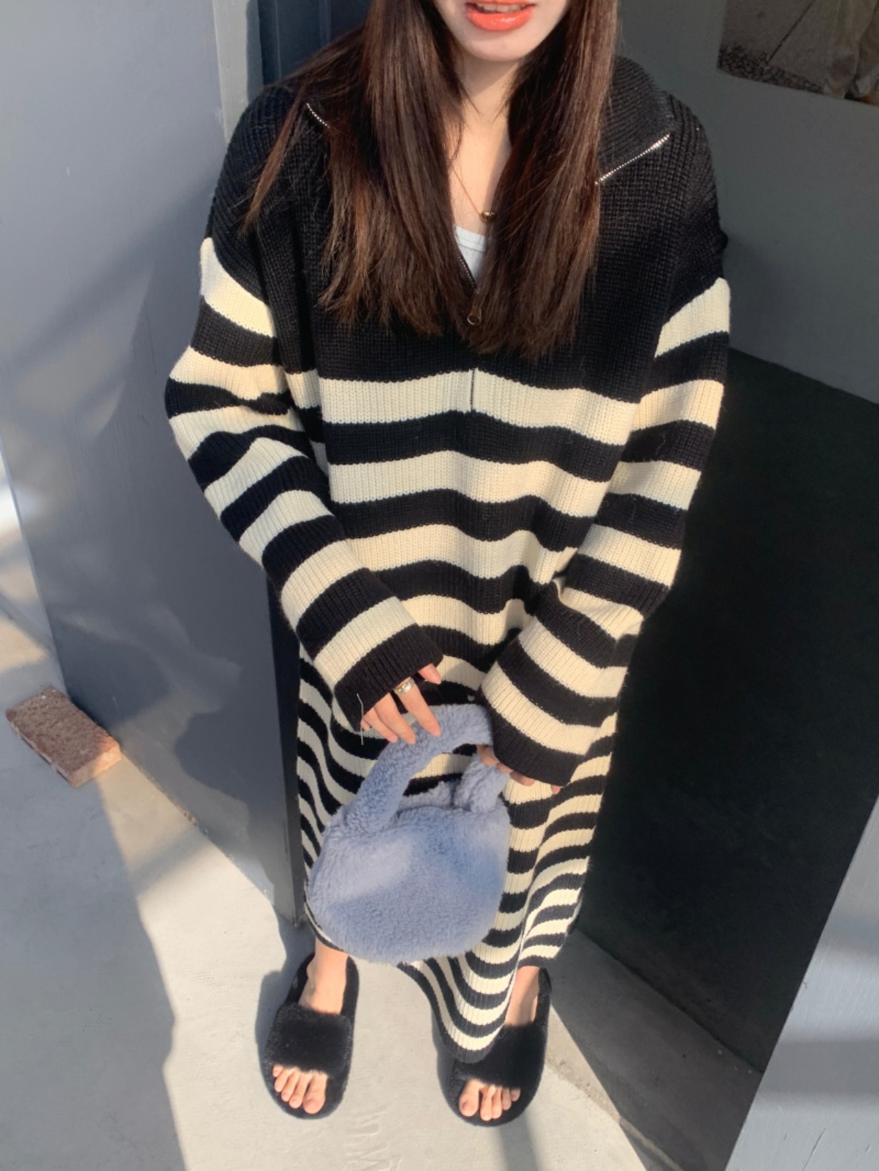 ハーフジップニットワンピース セーターワンピ ニットドレス ニットワンピース ゆったり 長袖 ワンピース ドレス レディース 韓国ファッション ルーズ 秋冬 3カラー C249
