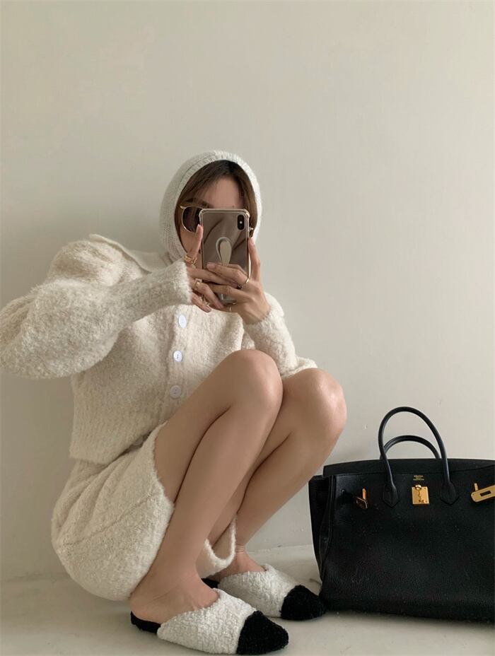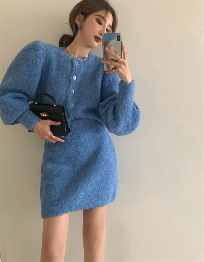 【セットアップ】ニットカーディガン+ニットスカート set up ニットアップ 上下セット 2点セット ニット カーディガン ミニスカート ハイウエスト ふわふわ 韓国コーデ オルチャン レディース 2カラー D376