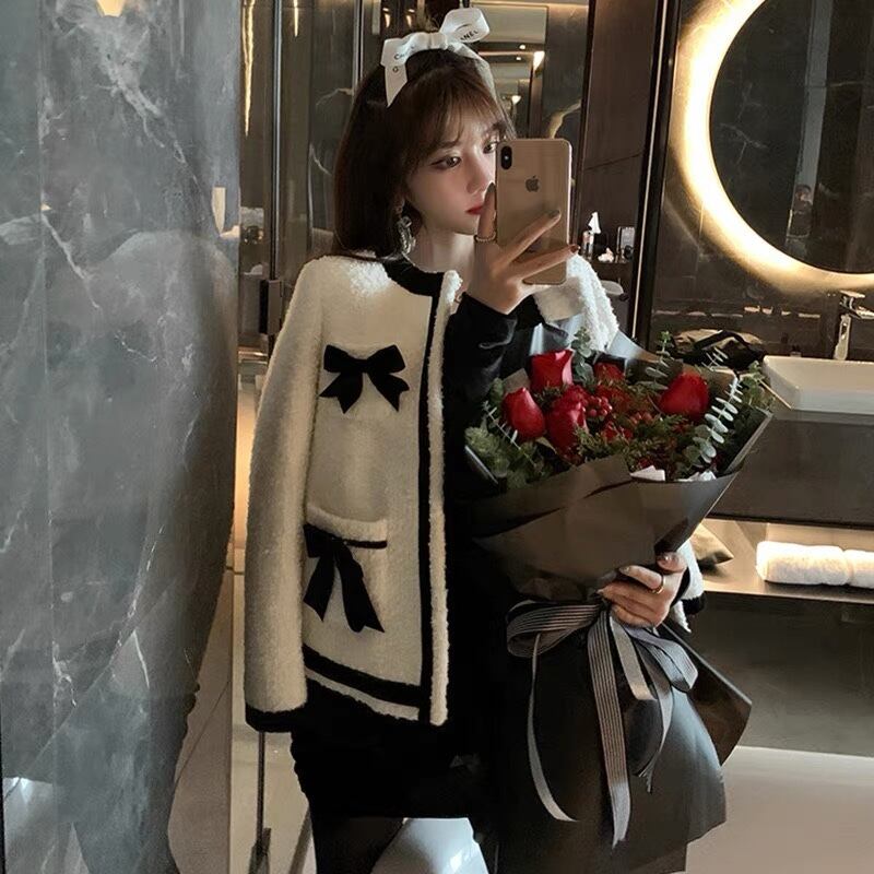 リボン付きジャケット ツイードジャケット ショートジャケット ノーカラージャケット 上品. 可愛い ジャケット コート アウター レディース ママコーデ デートコーデ D380