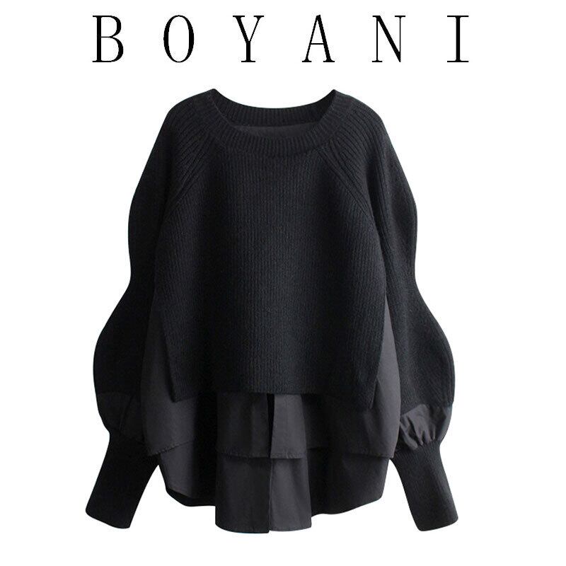 異素材 レイヤード風 ニット セーター ドッキングセーター トップス レディース モード系 オシャレ お仕事コーデ ママコーデ カジュアル D365