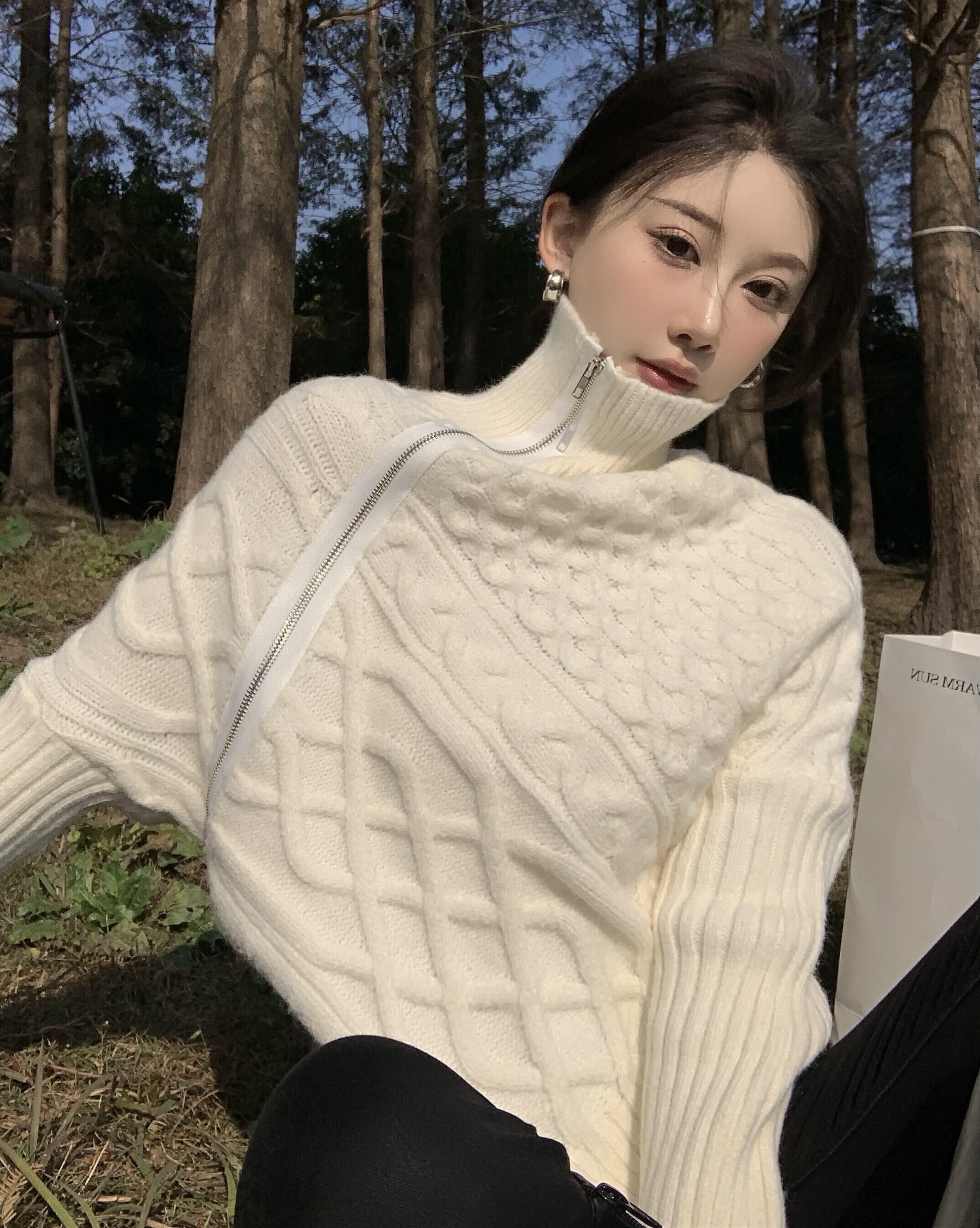 アシメントリーデザインがオシャレなツイストニット