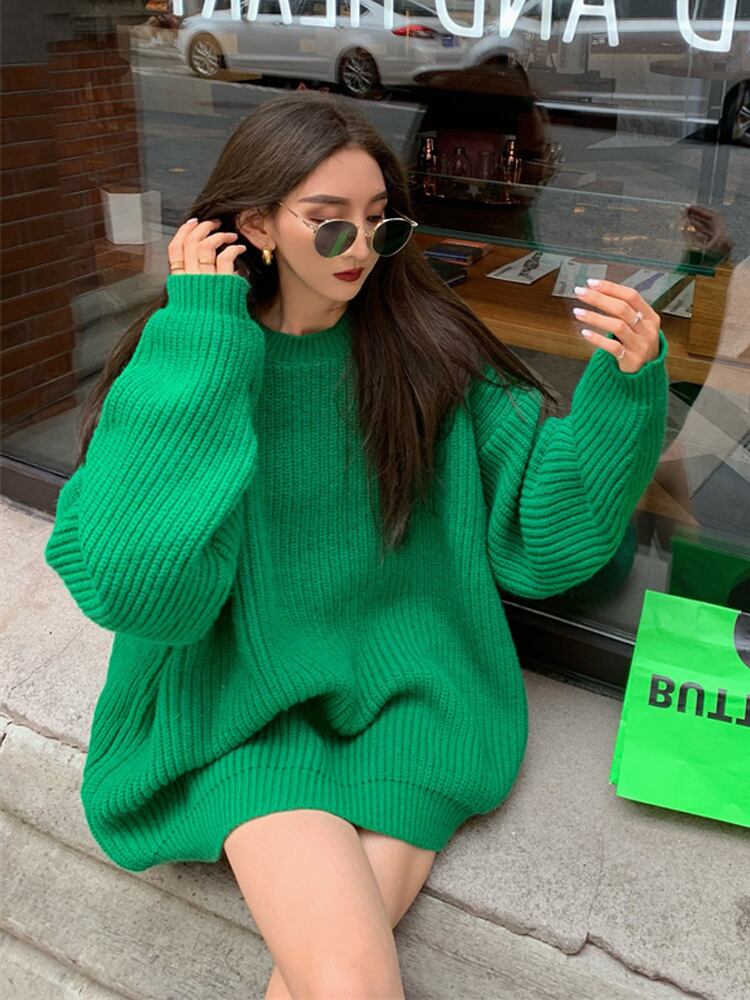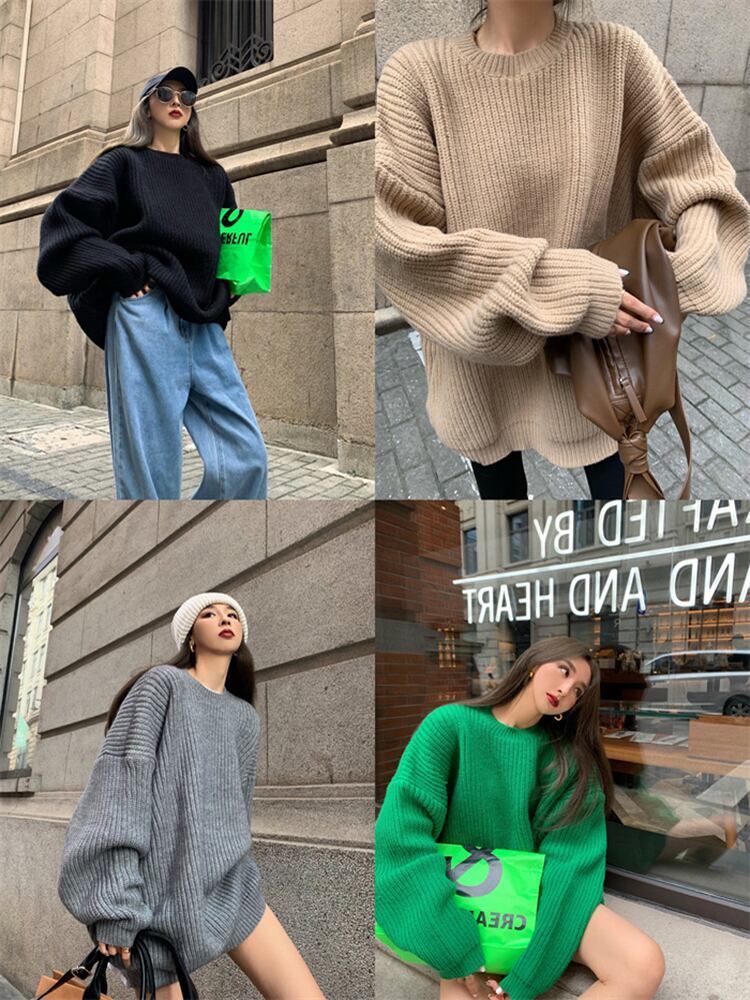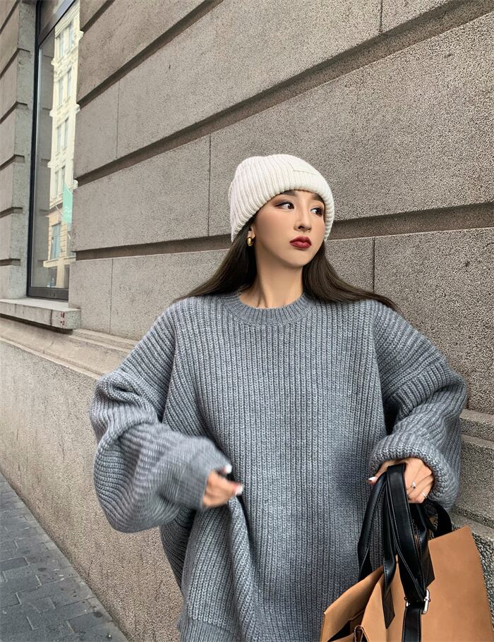 プルオーバーニットセーター ラウンドネック 長袖 ニット セーター トップス レディース 春秋冬 オーバーサイズ 可愛い カジュアル 丸首 ゆったり 4カラー C289