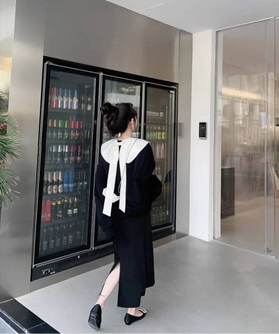 【セットアップ】ビッグカラー長袖セーター+ロングスカート スリット入り トップス セーター スカート 2 点セット set up レディース ママコーデ お仕事コーデ. マタニティーコーデ D245