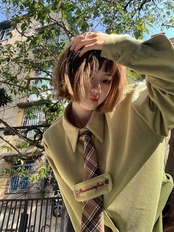ネクタイ付きシャツ トップス コーデュロイ グリーン パープル 可愛い シャツ レディース ジャケット 2カラー a4583