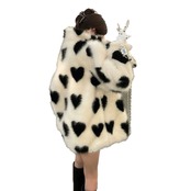 ハート柄 エコファーコート フェイクファーコー ファーコート 毛皮 ファージャケット ファー コート ジャケット アウター イミテーション 冬 レディース C246