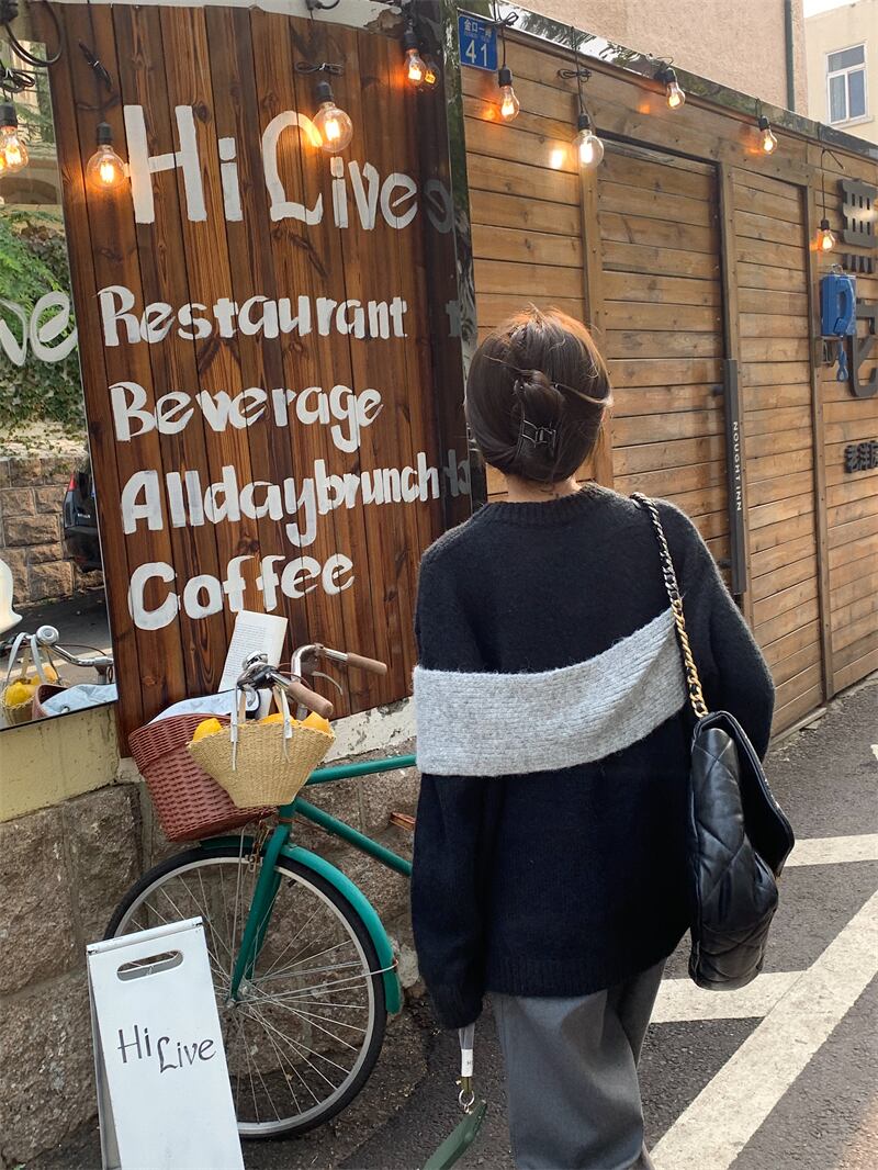 配色プルオーバーニット セーター バイカラー ニット レディース 秋冬 厚手 アウター プルオーバー ゆったり 高級感 オーバーサイズ 2カラー D407
