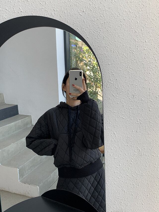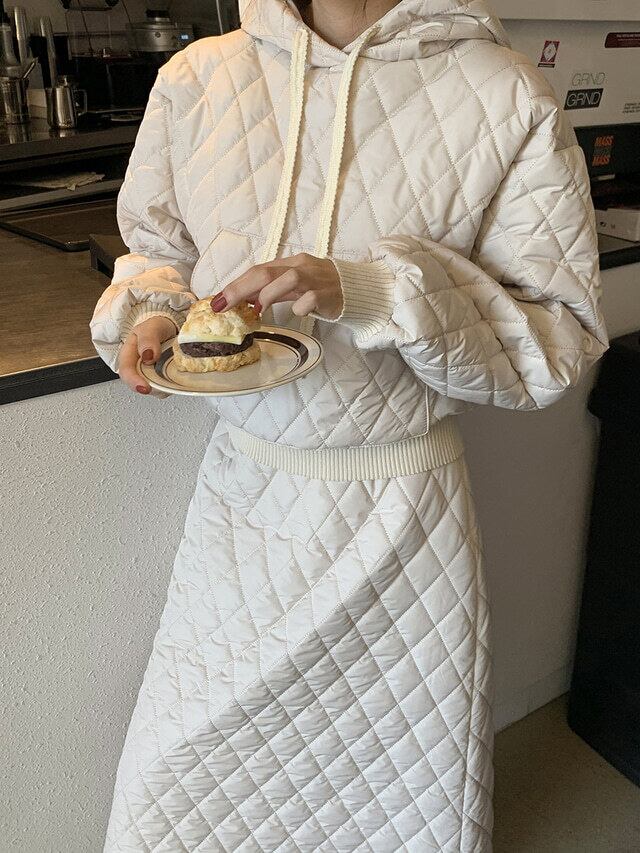 【セットアップ】キルティングフーディー+ハイウエストスカート