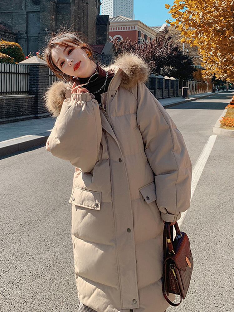ロングコート ファーフード付き中綿ジャケット ダウンジャケット ダウンコート 中綿ジャケット アウター コート ジャケット レディース 2カラー D417