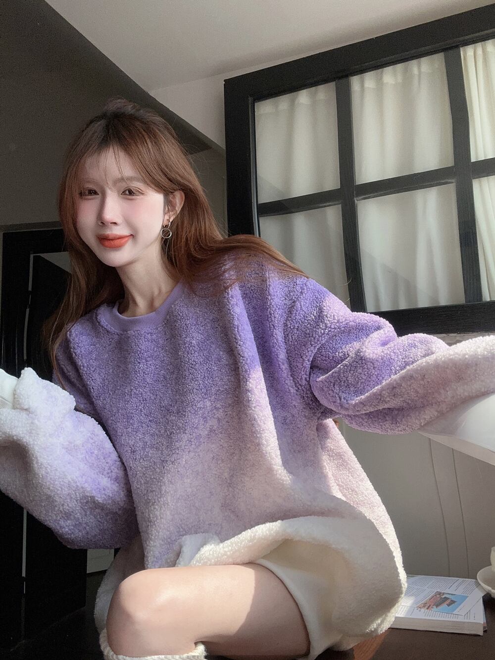 グラデーションボアニットセーター プルオーバー ニット セーター ボア トレーナー プードル ファー カジュアル トップス もこもこ レディース オルチャン 可愛い 秋冬 レディースニット 10代 20代 30代 40代 C324