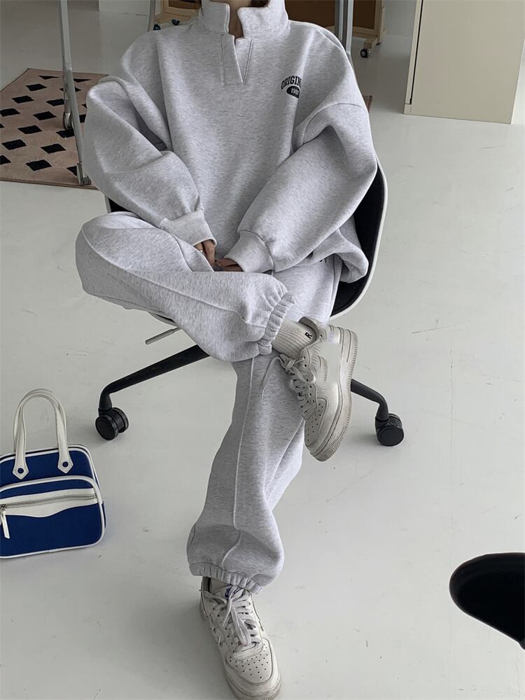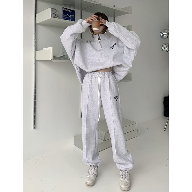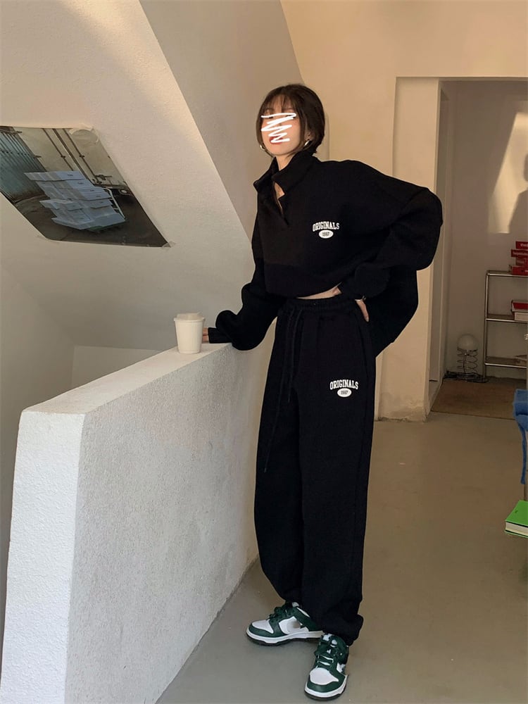 【セットアップ】スウェット トレーナー セットアップ 韓国 set up ストリート Vネック ダンス 衣装 ポロシャツ オルチャン HIPHOP K-POP レディース カジュアルストリート アメカジコーデ 2カラー a4696