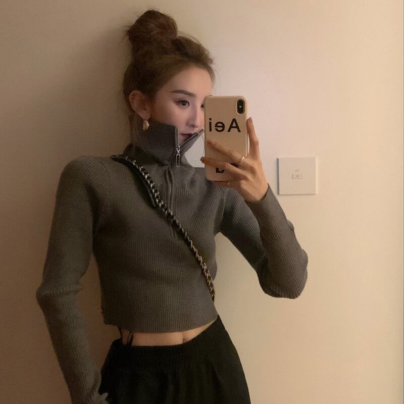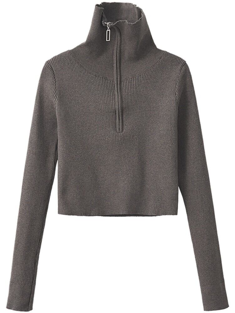 ハーフジップ タートルネックセーター ショート丈ニット リブニット セーター ニット トップス レディース 小顔 可愛い スタイルアップ 韓国 オルチャン 可愛い 通学 デート お出掛け 2カラー a4657