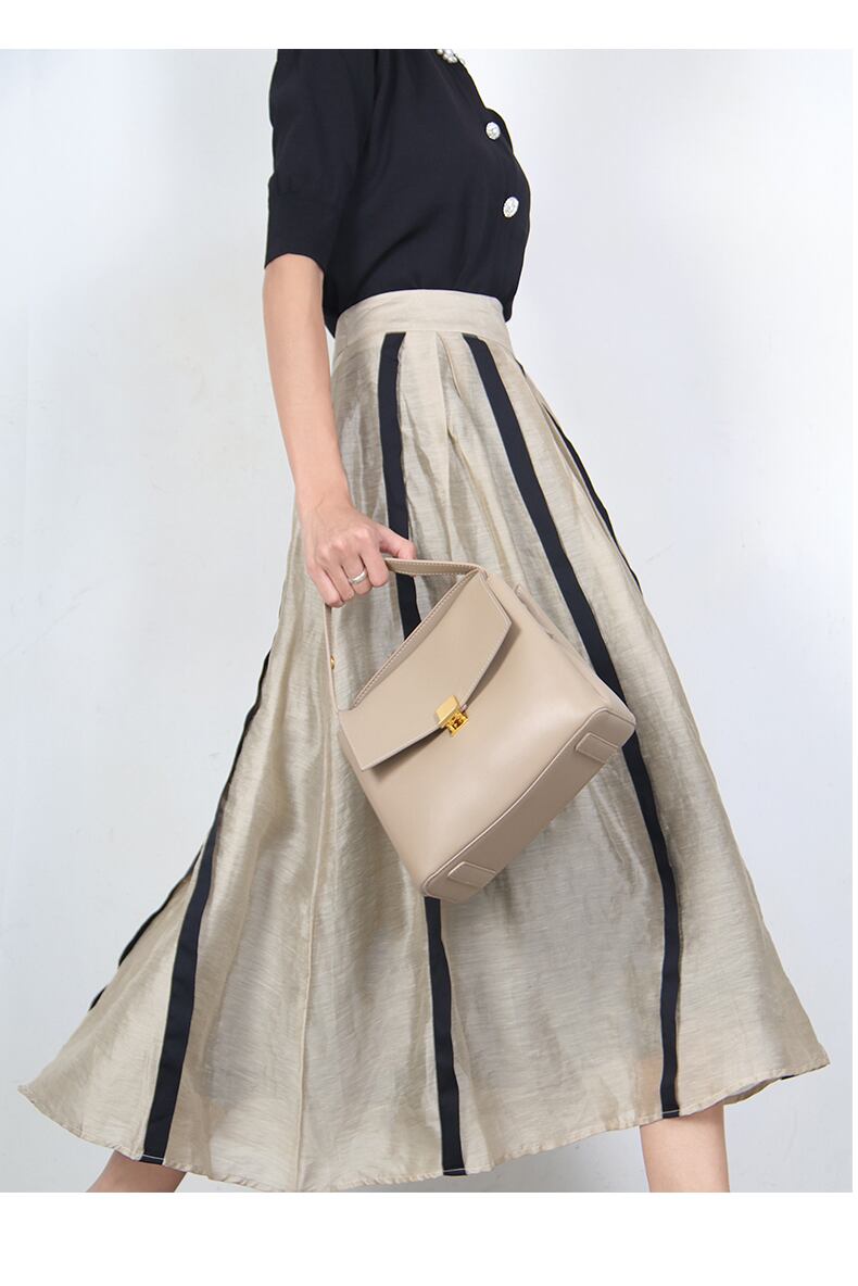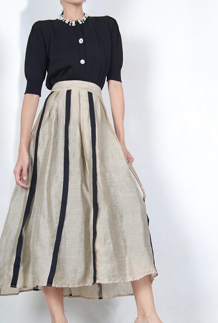 縦ストライプで細見え効果抜群のAラインスカート