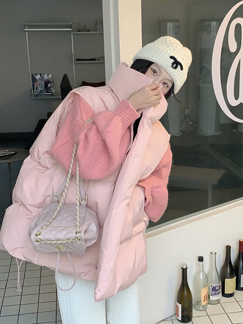 中綿ダウンベスト レディースダウンベスト 冬ベスト カジュアルダウン レディース チョッキ アウター 上着 ペディン ピンク ブラウン 2色 暖かい かわいい 綺麗 ファッション もこもこ フリーサイズ C341