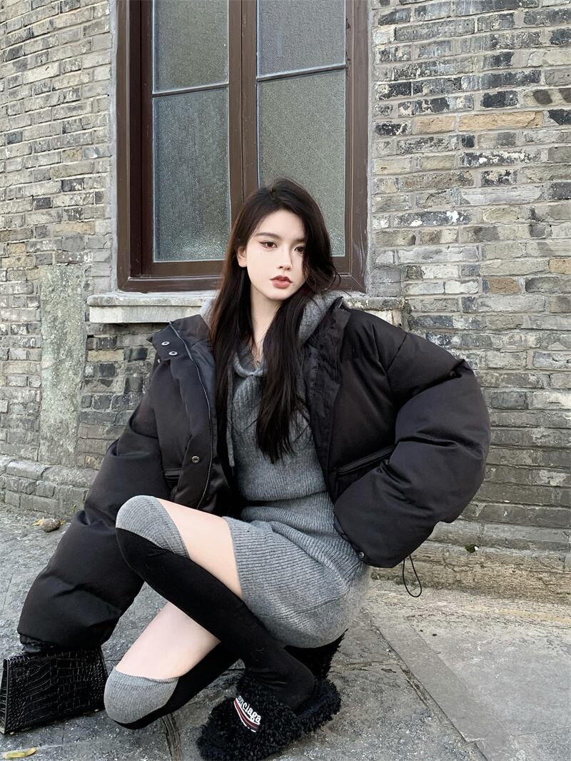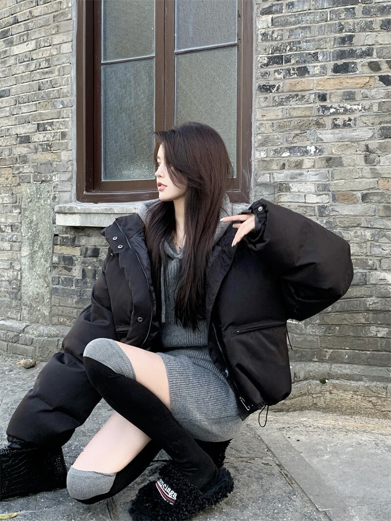 中綿ジャケット ショート丈 ダウンジャケット ハイネック オーバーサイズ ゆったり シンプル 韓国ファッション レディース 大人可愛い ガーリー カジュアル ストリート系 スタイルアップ C342