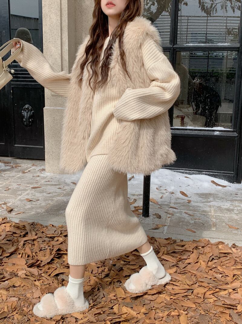 リブニット+リブニットスカート+エコファーベストのお得な3点SET♡