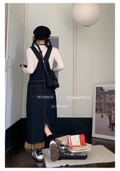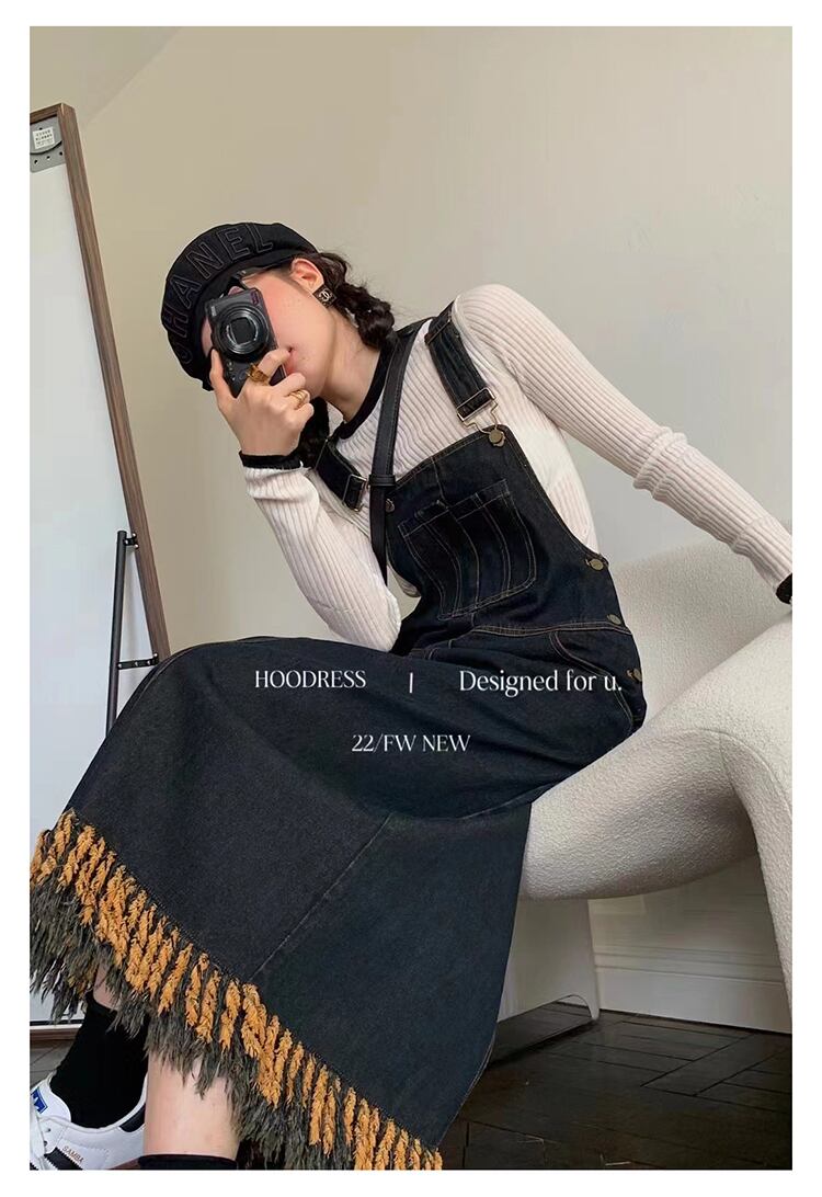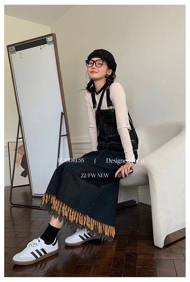 デニムフリンジジャンパースカート サスペンダースカート デニムジャンパースカート 大人 春 夏 秋 レディース デニム ジャンスカ サロペット ワンピース サロペット a4600