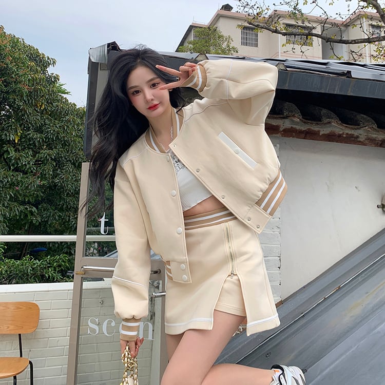 【セットアップ】スタジャン+ミニスカート ブルゾン スカート スタジャン set up 上下セット ツーピース レディース 可愛い オルチャン カジュアルストリート アメカジコーデ 3カラー C366