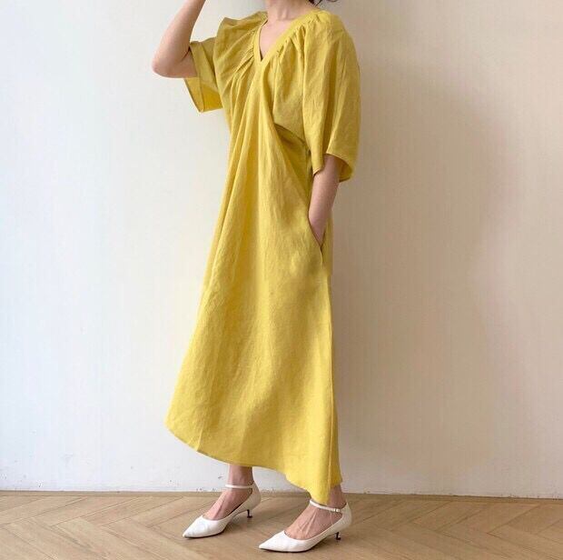 ワンピース レディース Vネックジャンパースカート 体型カバー Aライン ゆったり シンプル 20代 30代 40代 春 夏 薄手 2カラー a4605