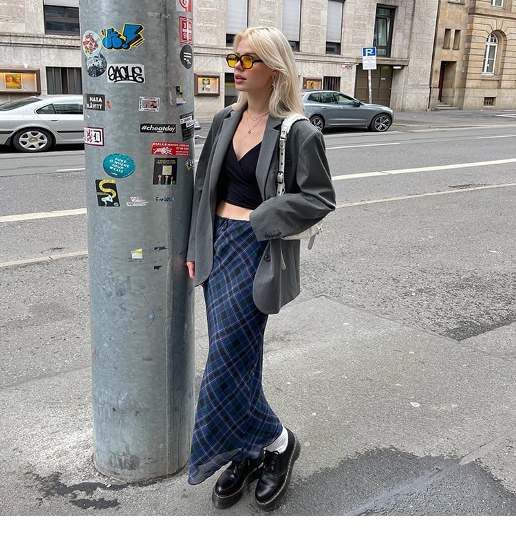 チェック柄スカート ロングスカート ミモレスカート スカート チェック柄 レディース ストレート ゆったり ミドル丈 トレンド カジュアルストリート アメカジコーデ LAコーデ a4628