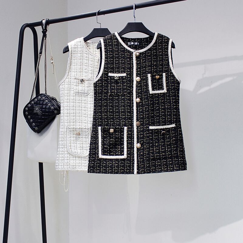 【M-4XL】ツイードジレ ツイード ボタン ジレ ベスト トップス レディース ショート コート レディース 春 秋 冬 オフィスコーデ ママコーデ 体型カバー a4755