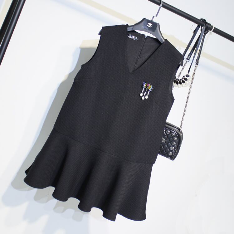 Vネックフリルジレ ベスト ペプラム Vネック ミディアム丈 ビジュー 韓国 ワンピース トップス レイヤード レディース 春 秋 冬 オフィスコーデ ママコーデ 体型カバー a4756