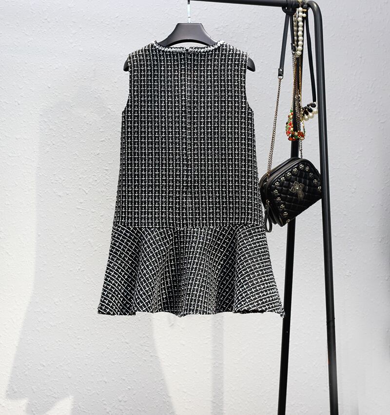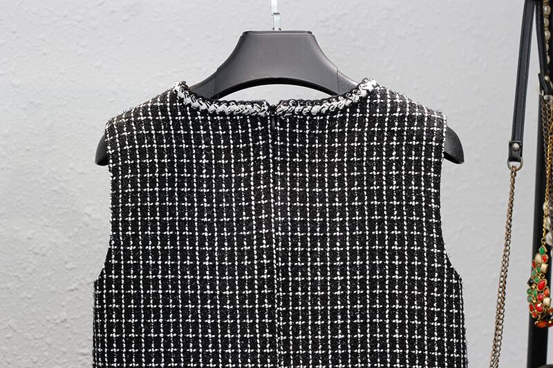 Vネックフリルツイードジレ ベスト ペプラム Vネック ミディアム丈 ビジュー 韓国 ワンピース トップス レイヤード レディース 春 秋 冬 オフィスコーデ ママコーデ 体型カバー a4757