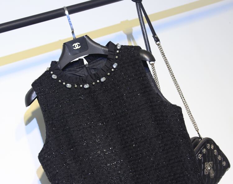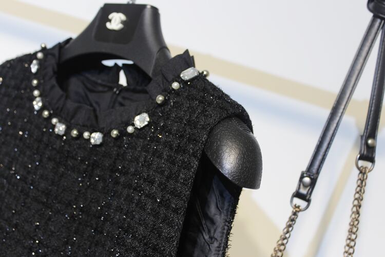 ツイードワンピース レディース ワンピース ツイード ビジュー ノースリーブ バックファスナー ツイードジレ ベスト 韓国 ワンピース トップス レイヤード レディース 春 秋 冬 オフィスコーデ ママコーデ 体型カバー a4758