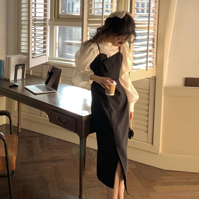 【セット】サロペットスカート+ブラウス サロペットスカート レディース 2点セット フレンチ 可愛い トップス ブラウス ワンピース オルチャン a4631