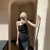 アシンメネックスリットワンピース キャミソールワンピース ワンピース ドレス レディース アシメントリーワンピース. 夏 サマーワンピ サスペンダースカート スリム セクシー a4637