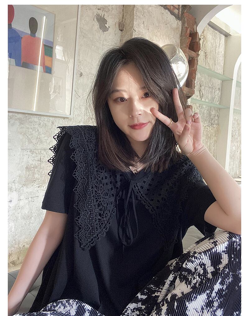 レースカラー半袖Tシャツ トップス カットソー 半袖Tシャツ レース襟 半袖 Tシャツ レディース 可愛い 韓国 オルチャン お仕事コーデ デート ママコーデ 2カラー. a4640