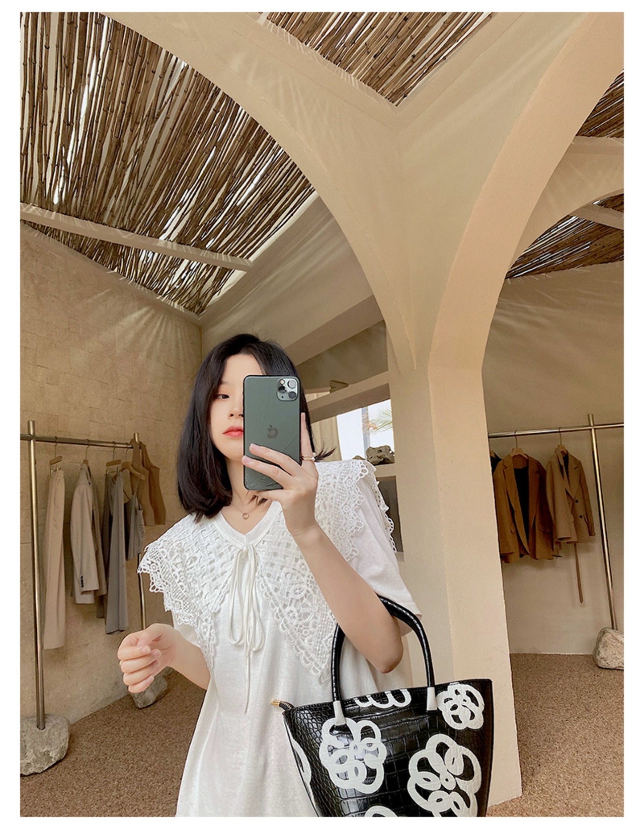 レースカラーには、上品な雰囲気が漂います。
