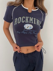 クロップドプリントTシャツ 半袖Tシャツ サマー ミニTシャツ Tシャツ ヘソ出し クロップド トップス カジュアル ストリートファッション レディース アメカジコーデ 10代 20代 30代 40代 50代 a4796