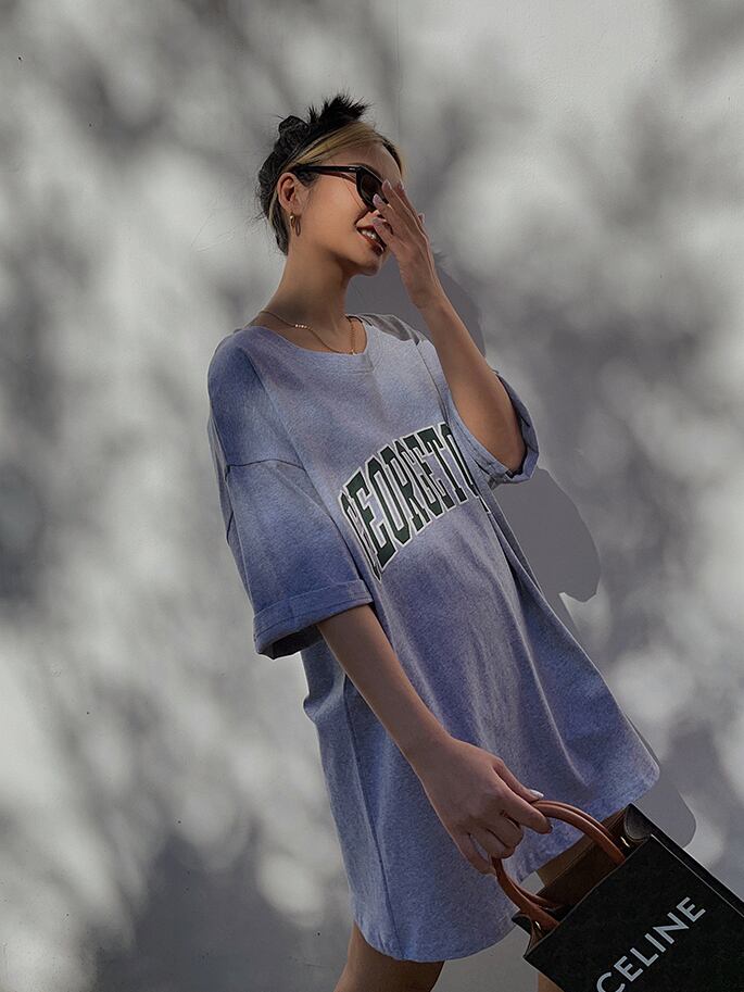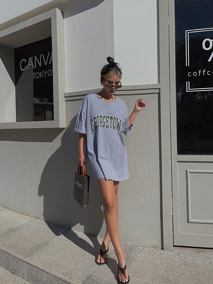 プリントロゴTシャツ 半袖Tシャツ サマー オーバーサイズTシャツ Tシャツ トップス カジュアル ストリートファッション レディース アメカジコーデ 10代 20代 30代 40代 50代 a4798