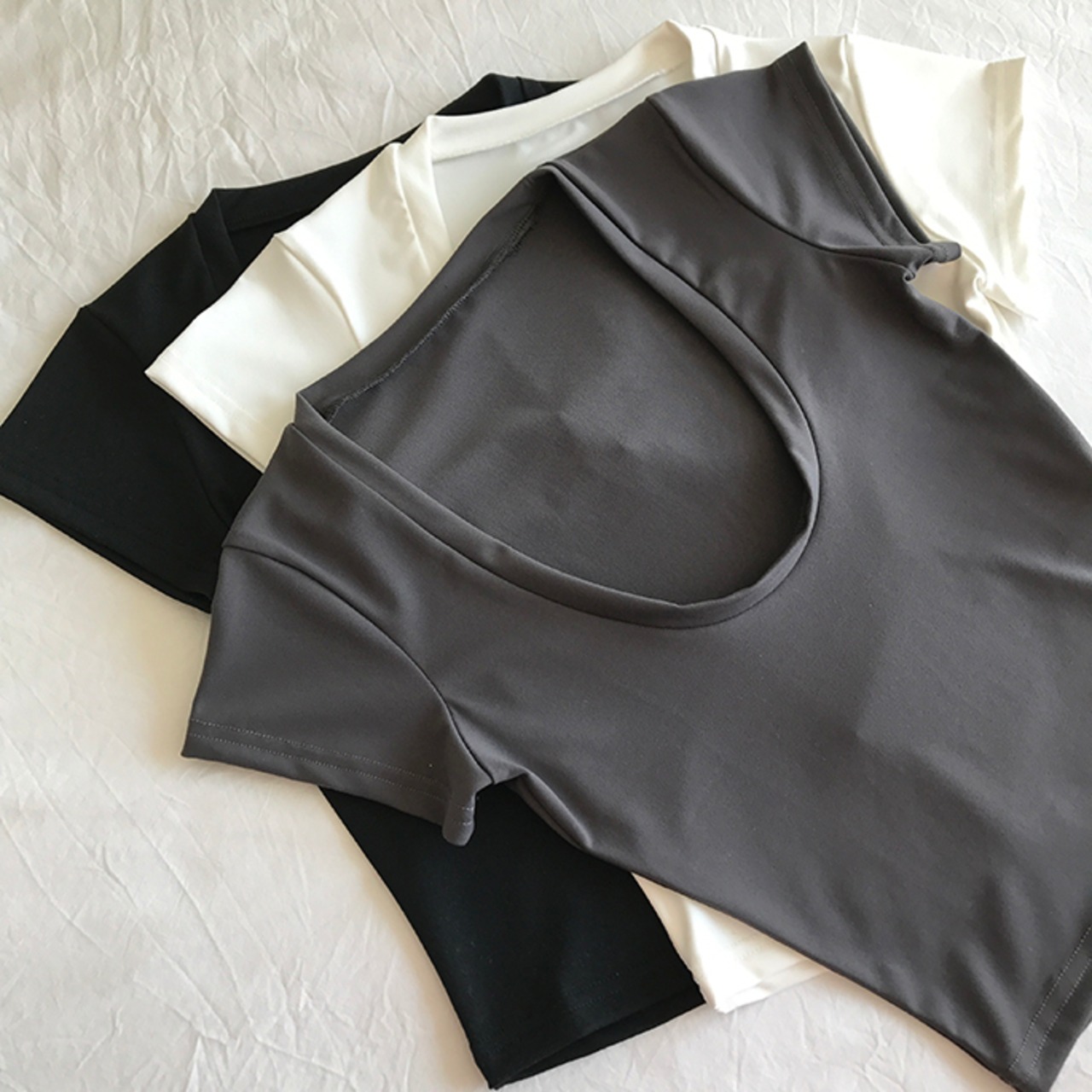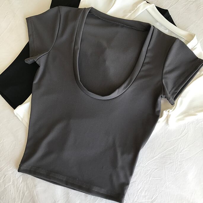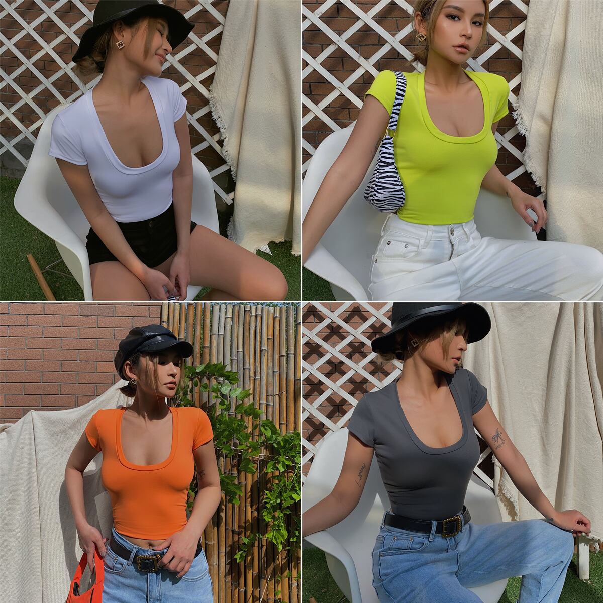 Uネック半袖Tシャツ クロップドTシャツ 半袖Tシャツ サマー ミニTシャツ Tシャツ ヘソ出し クロップド トップス カジュアル ストリートファッション レディース アメカジコーデ 10代 20代 30代 40代 50代 a4804