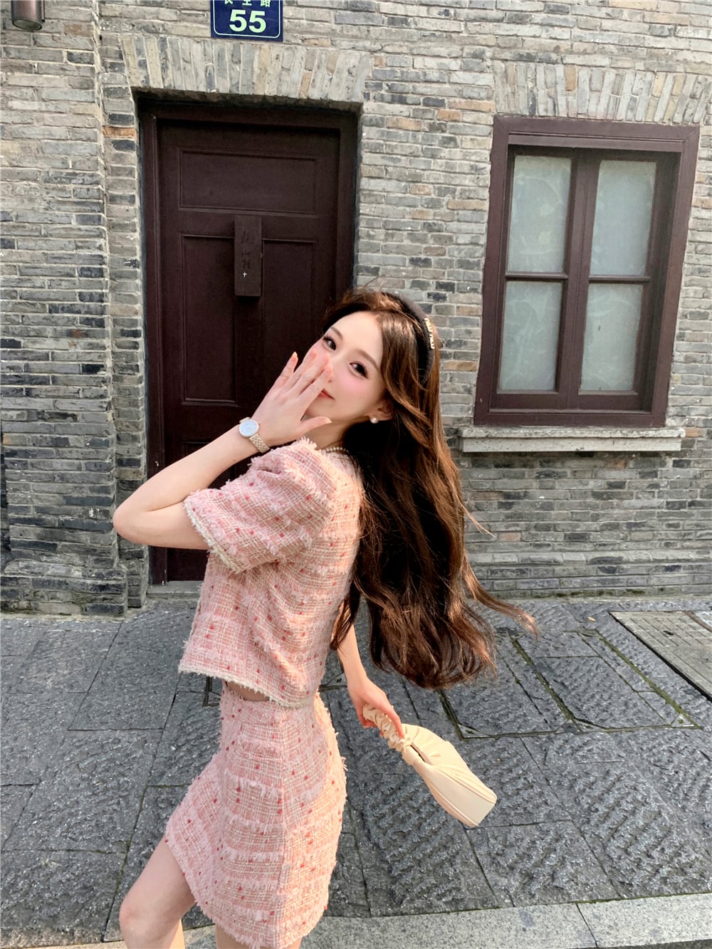 【セットアップ】ツイード 半袖ジャケット+ハイウエスト ミニスカート