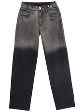 グラデーション柄のコントラストカラージーンズ。