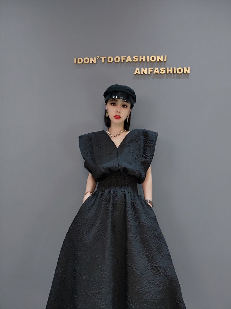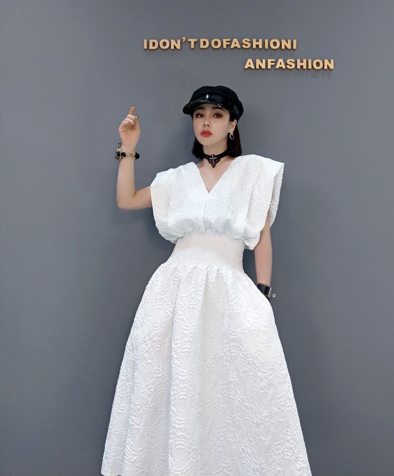 華やかで上品なVネックエンボスワンピースのご紹介です。