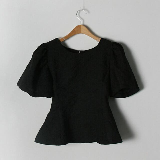 パフスリーブエンボスブラウス