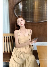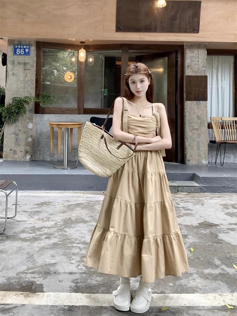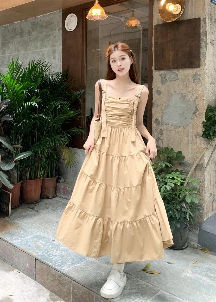 ギャザーワンピース ノースリーブサスペンダーロングスカート サスペンダースカート ノースリーブワンピース サマーワンピース ワンピース ドレス ロングワンピ ティアードワンピース レディース 着回しコーデ 春夏 レディースコーデ 可愛い オシャレ 綺麗め 韓国 薄手 20代 30代 40代 ファッション a4975