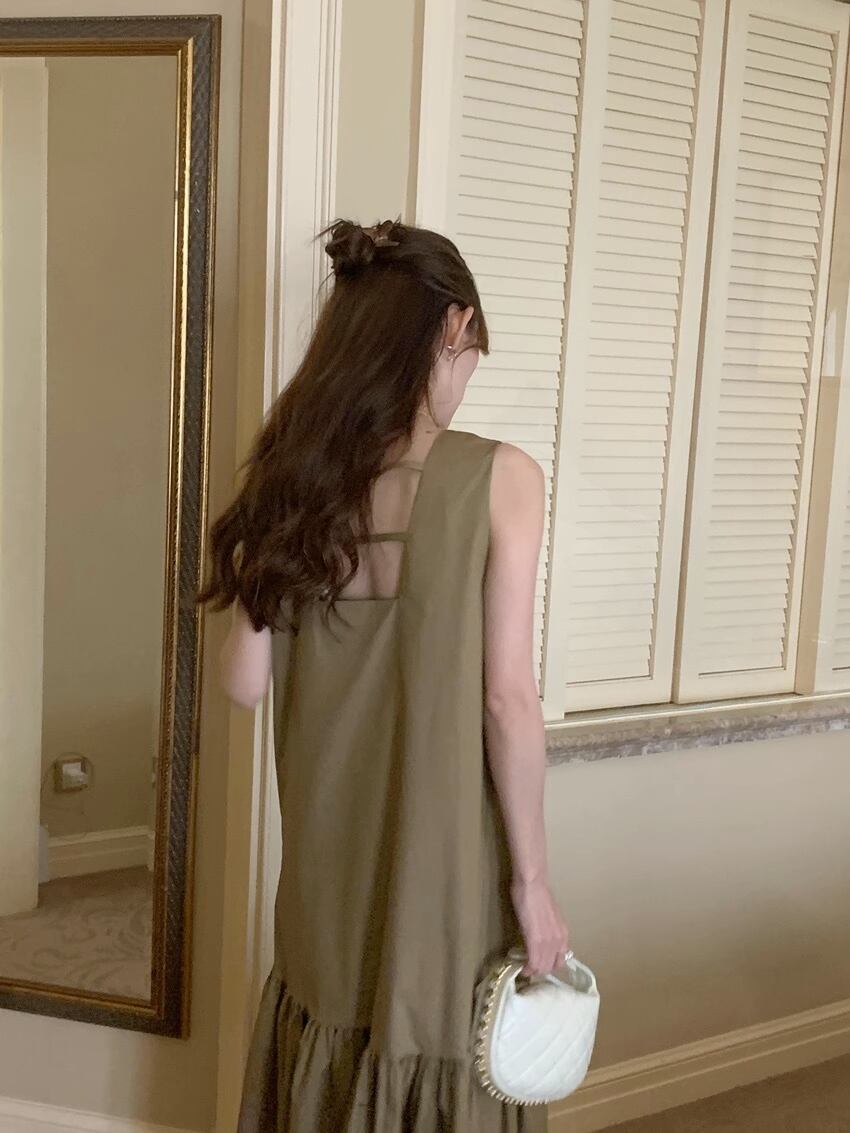 バックオープンワンピース 裾ティアード Iライン ワンピース サマードレス マーメイドワンピース ノースリーブワンピース ロングワンピ ワンピース ドレス レディース 可愛い オシャレ 綺麗め 韓国 薄手 20代 30代 40代 ファッション a4952