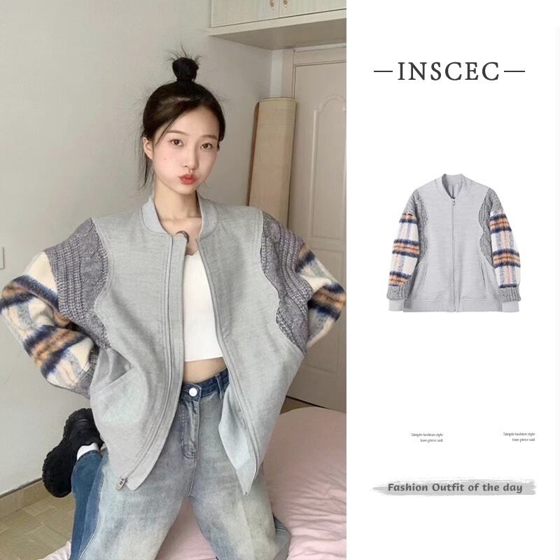 チェック柄ニットジャケット 異素材MIXジャケット ニットジャケット ジャケット ニット. アウター ブルゾン ジャンパー ウインドブレーカー ルーズ レディース メンズ ユニセックス 人気 トレンド a4653